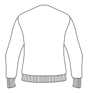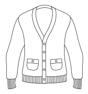 - 12 gauge. Set in sleeves. Six self colour horn effect buttons. 1x1 ribbed neck, cuffs and hem.